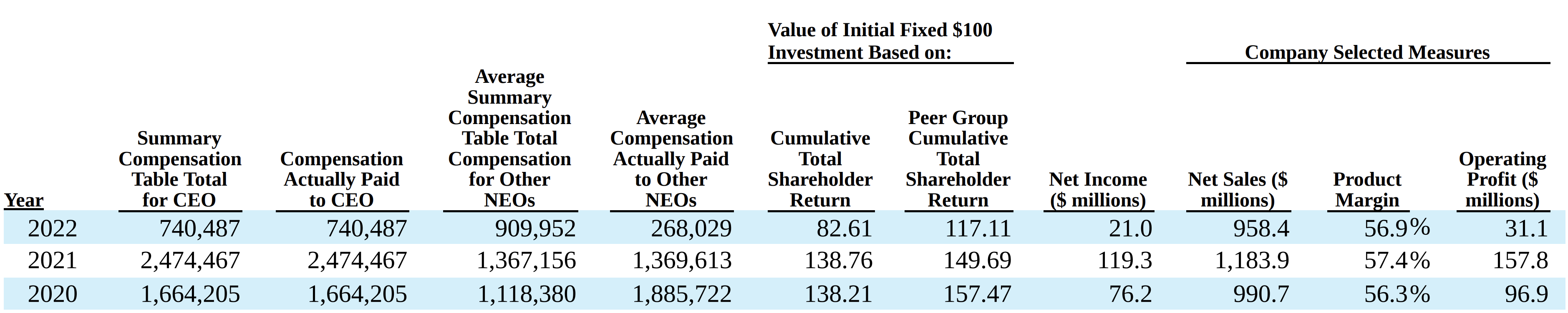 Our CEO is the principal executive officer (“PEO”). The following table sets forth information concerning the compensation of our PEO(s) and other NEOs for each of the fiscal years (“FY”) ending December 31, 2020, 2021 and 2022 and our financial performance for each such fiscal year: